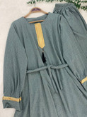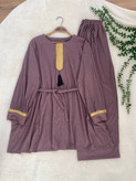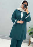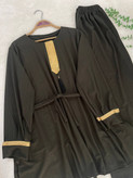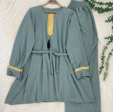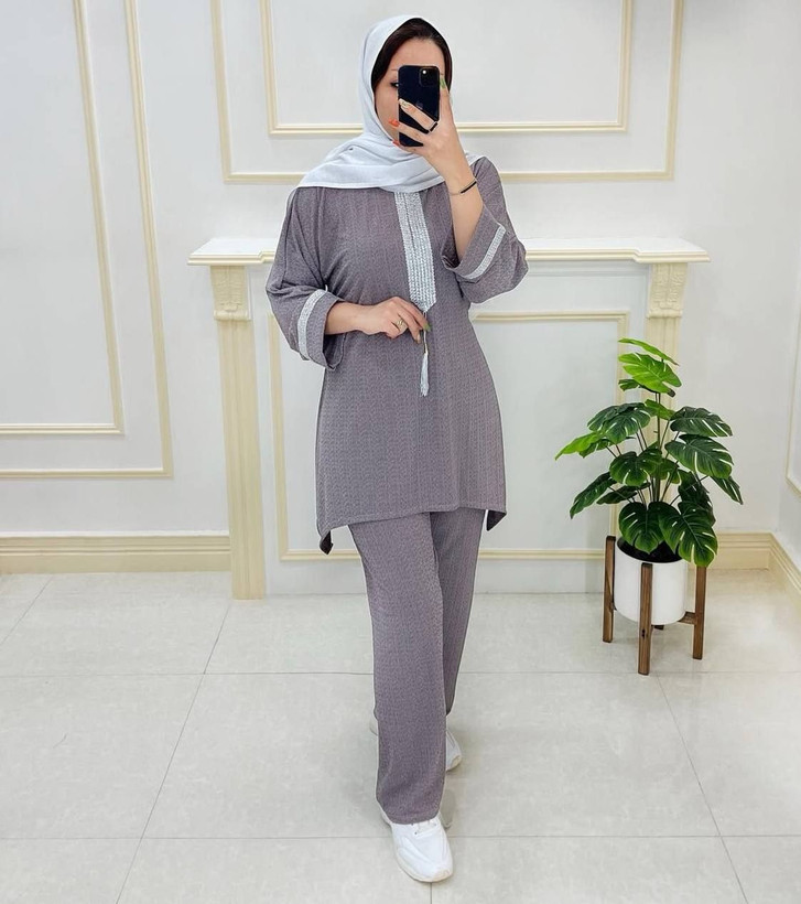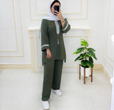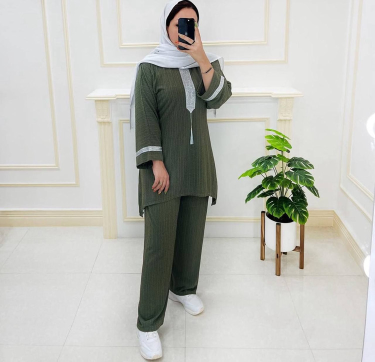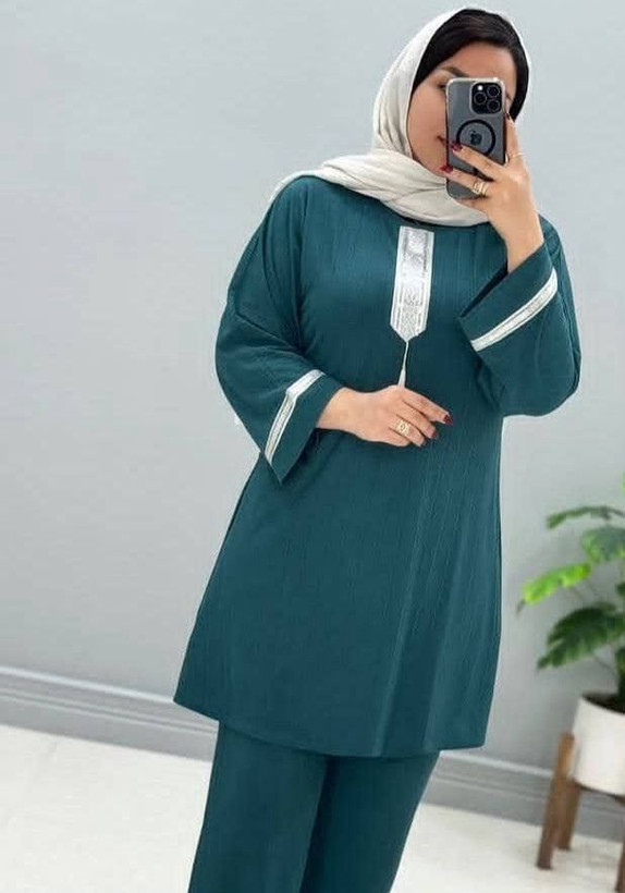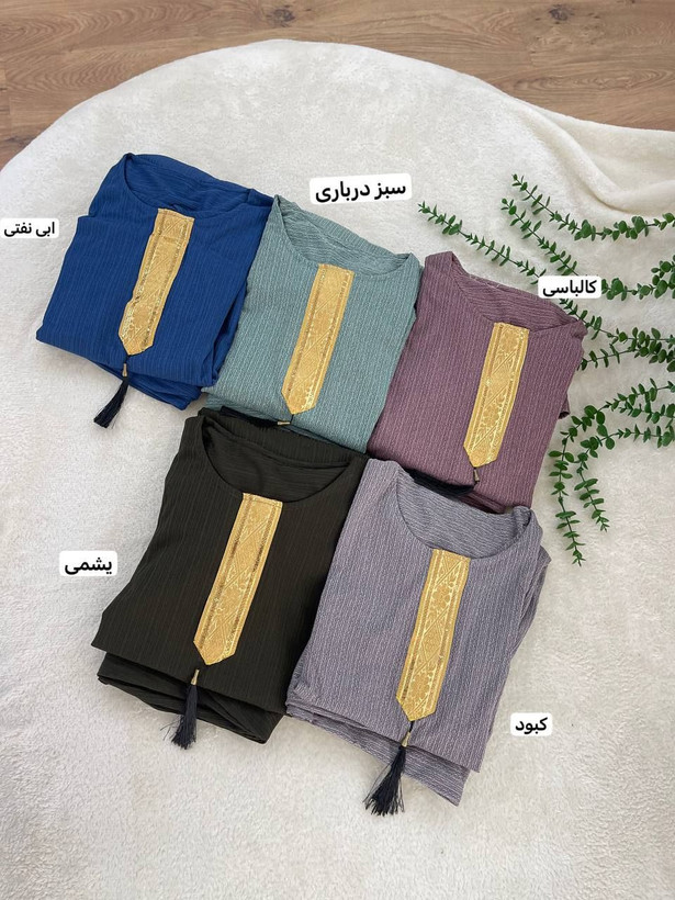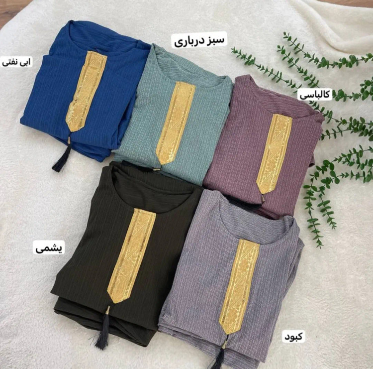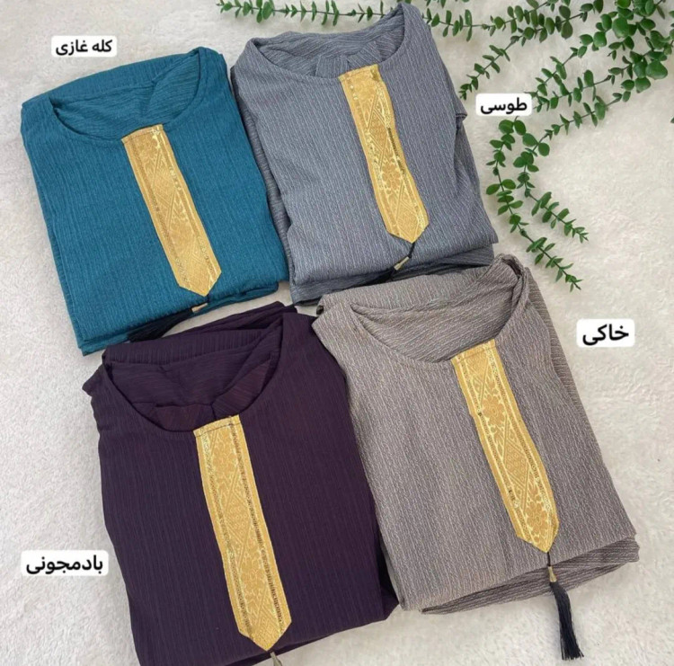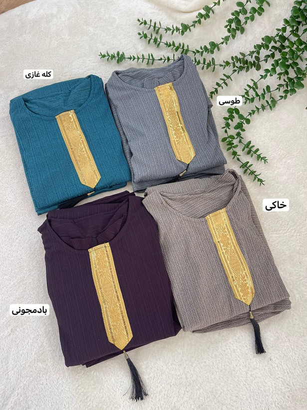 رنگ بندی: ابی نفتی,بادمجونی,خاکی,سبزدرباری,طوسی,کالباسی,کبود, کله غازی,یشمی سایزها: فری از۳۸تا۴۵-۵۰ قد تونیک حدود 82،دورسینه حدود 120،قد استین از یقه حدود 70،قد شلوارحدود 96،کمرکشی و تا حدود 120 کشسانی دارد بند دارد،ضدچروک