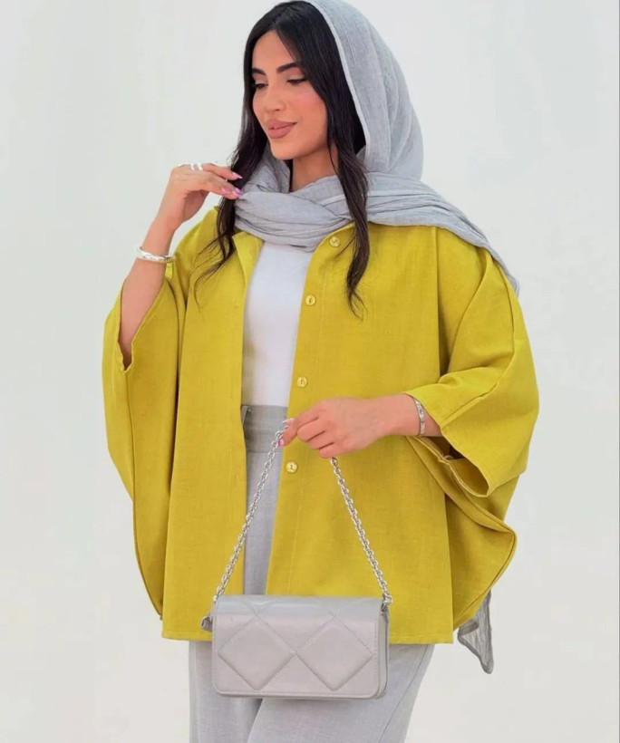 رنگ بندی: ابی,بادمجونی,خردلی,سبز ارتشی,سبز چمنی,سبز لجنی,سرخابی,صورتی,فسفری,قرمز,کرم,گلبهی,مشکی سایزها: فری از 36 تا 50 قد حدود 68،دورسینه ازاد،قد استین از یقه حدود۵۶