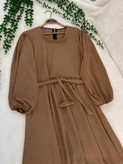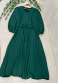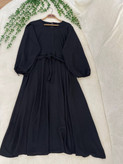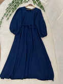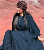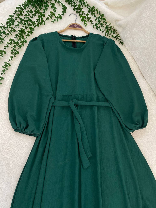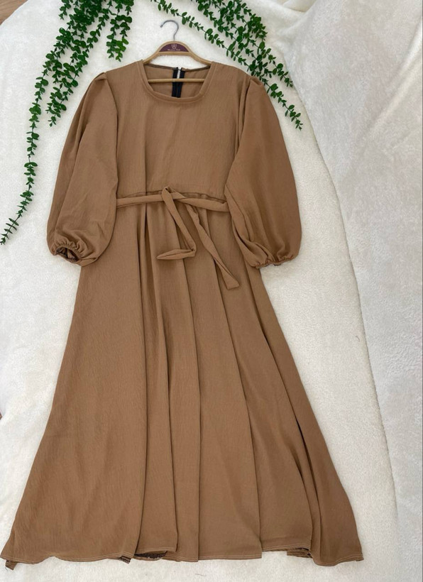 قد حدود 130 - دورسینه حدود 104 - قد استین از یقه حدود 69 - پشت کمر زیپ دارد