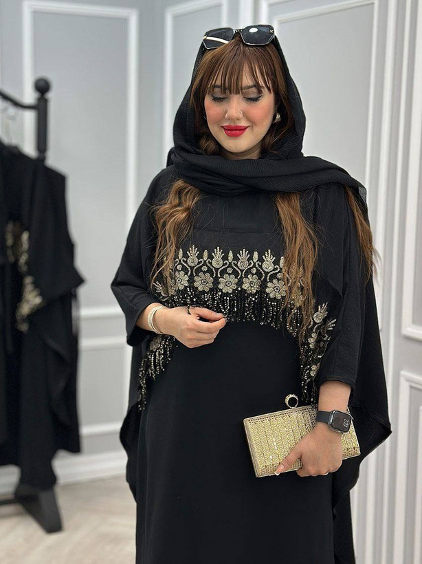دوتیکه سارافون و رویه پولک دوزی جنس ابروبادی خرج کار گیپور پولک دوزی شده فری سایز ارسال رایگان