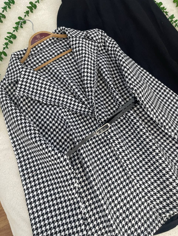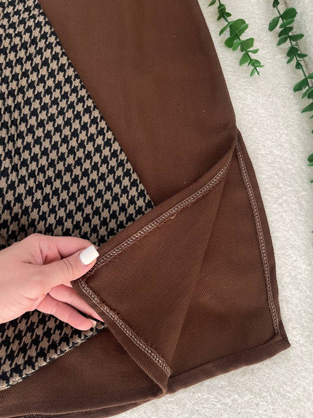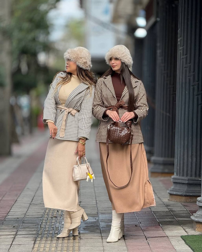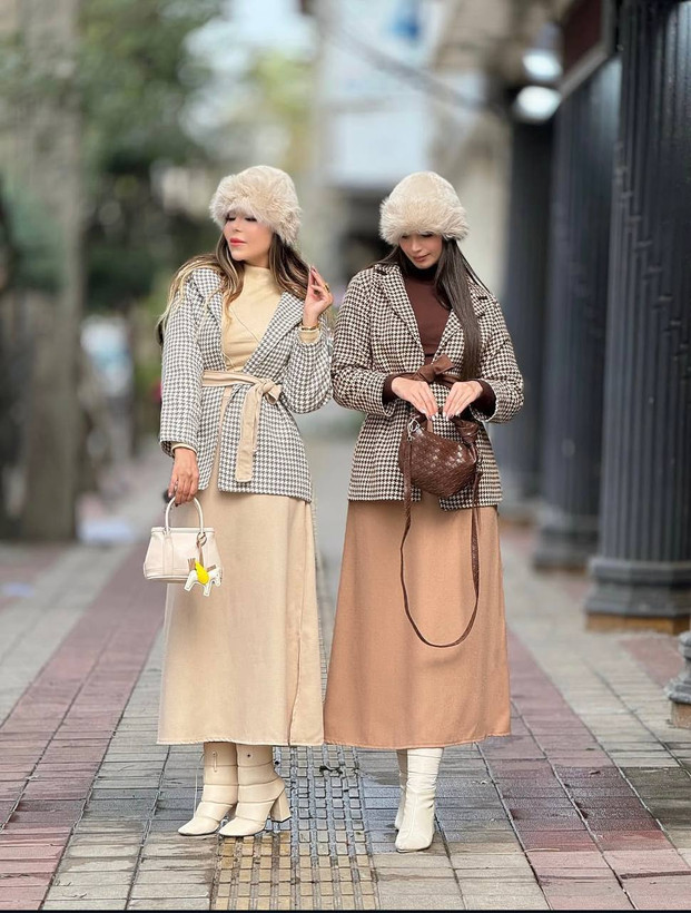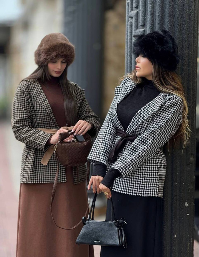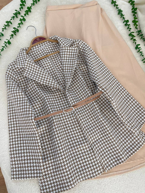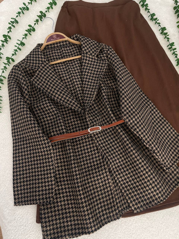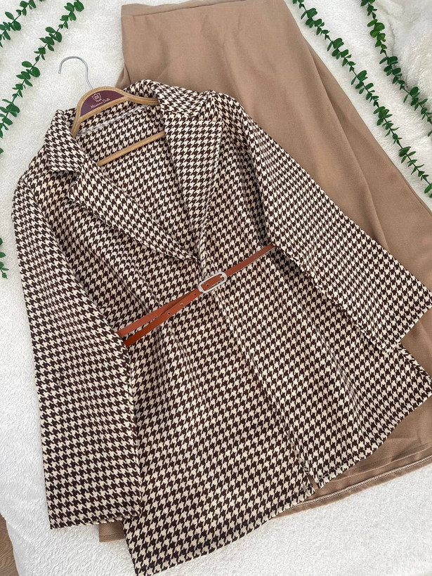 جنس : کت پیردوبل ضخیم دامن توییت پشمی کمربند چرمی