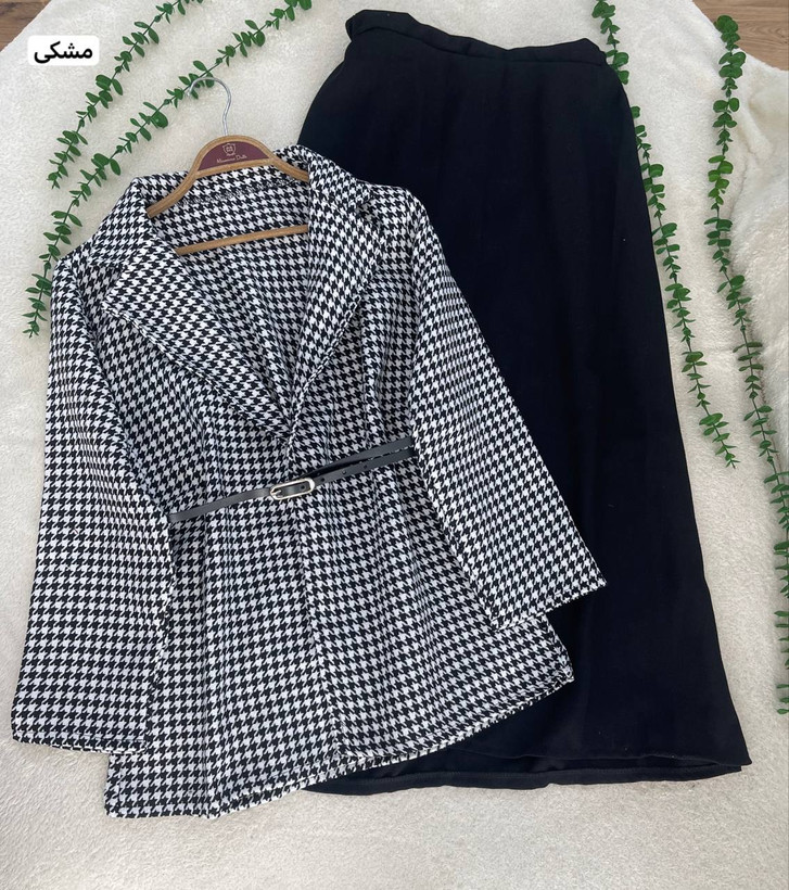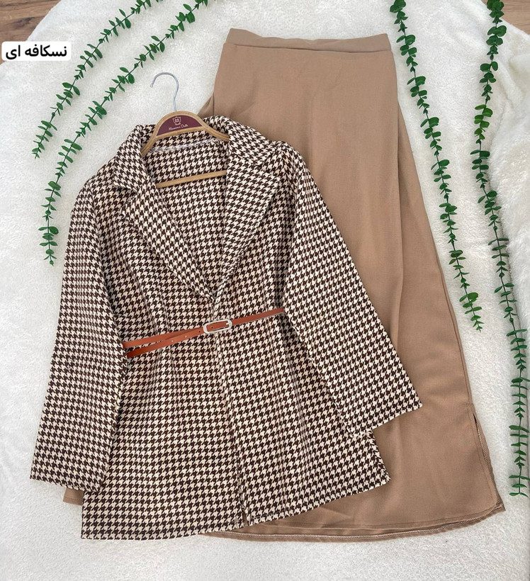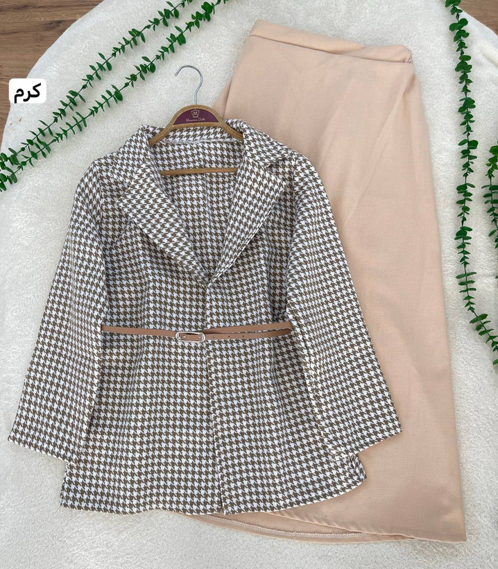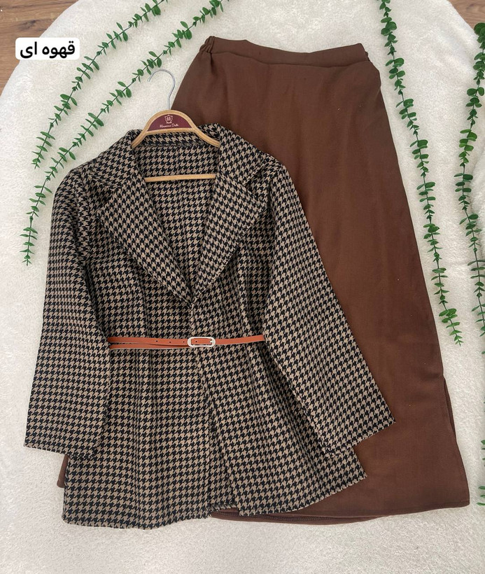 ست کت دامن کمربند لی لی جنس کت پیردوبل ضخیم دامن توییت پشمی کمربند چرمی فری سایز ارسال رایگان