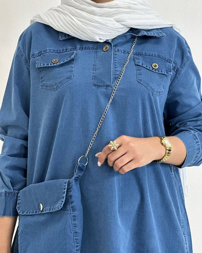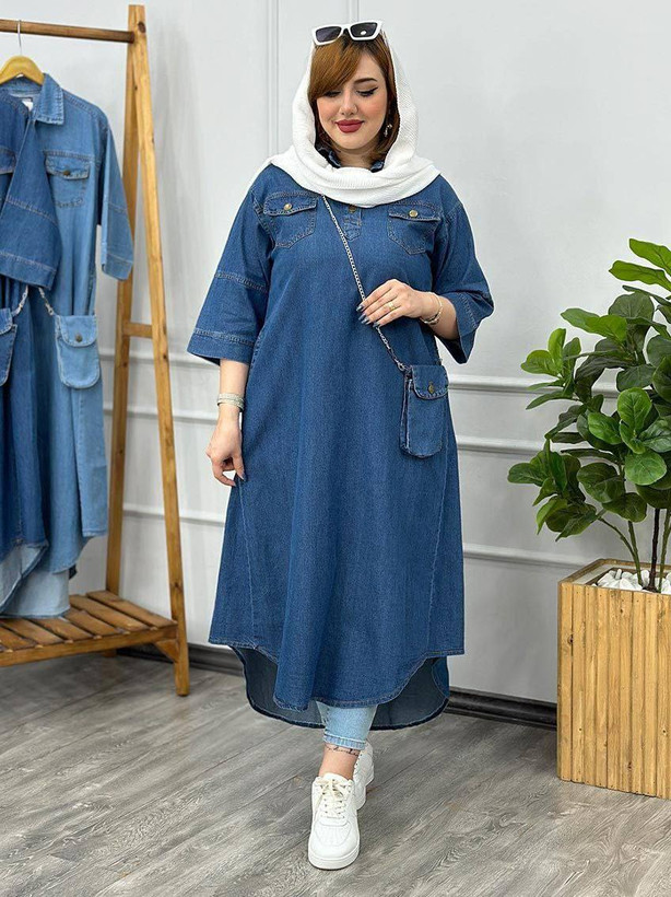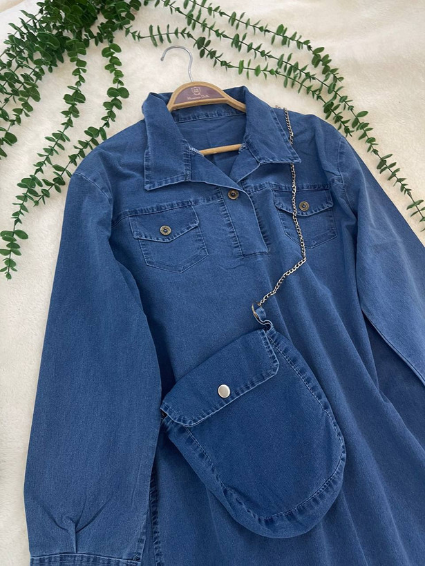 پیراهن لی زنانه با کیف جنس لی سنگشور شده فری سایز ارسال رایگان