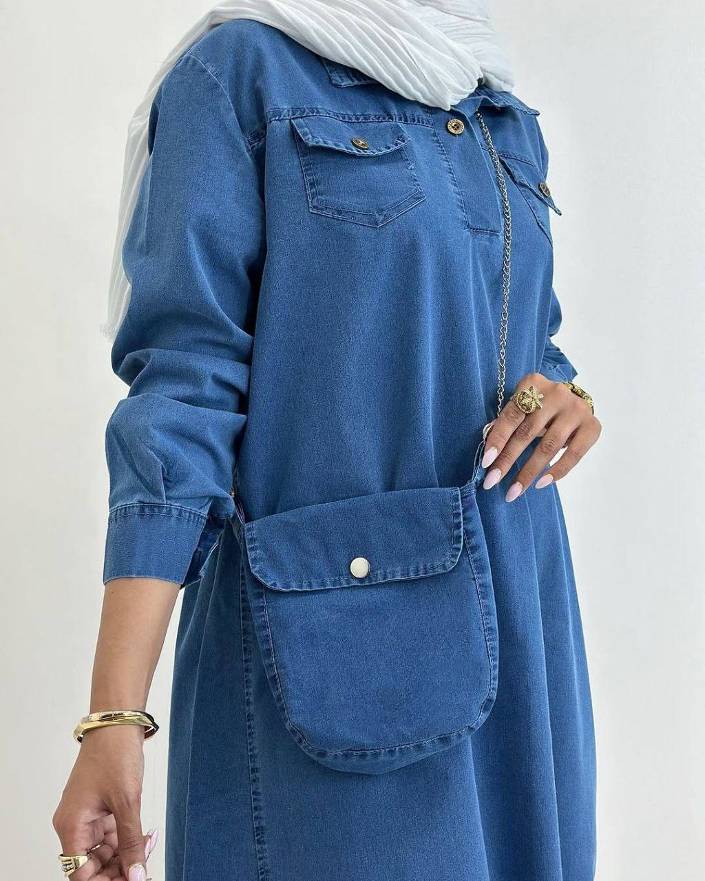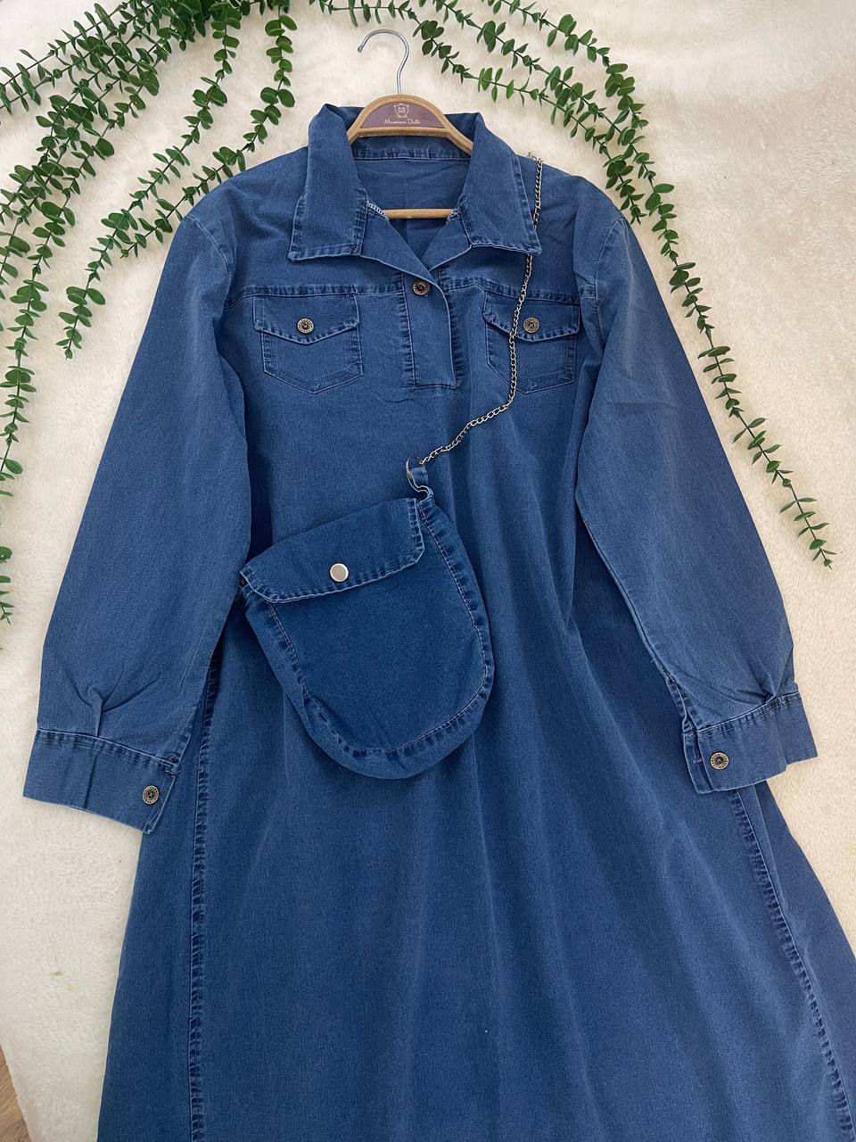 پیراهن لی زنانه با کیف جنس لی سنگشور شده فری سایز ارسال رایگان