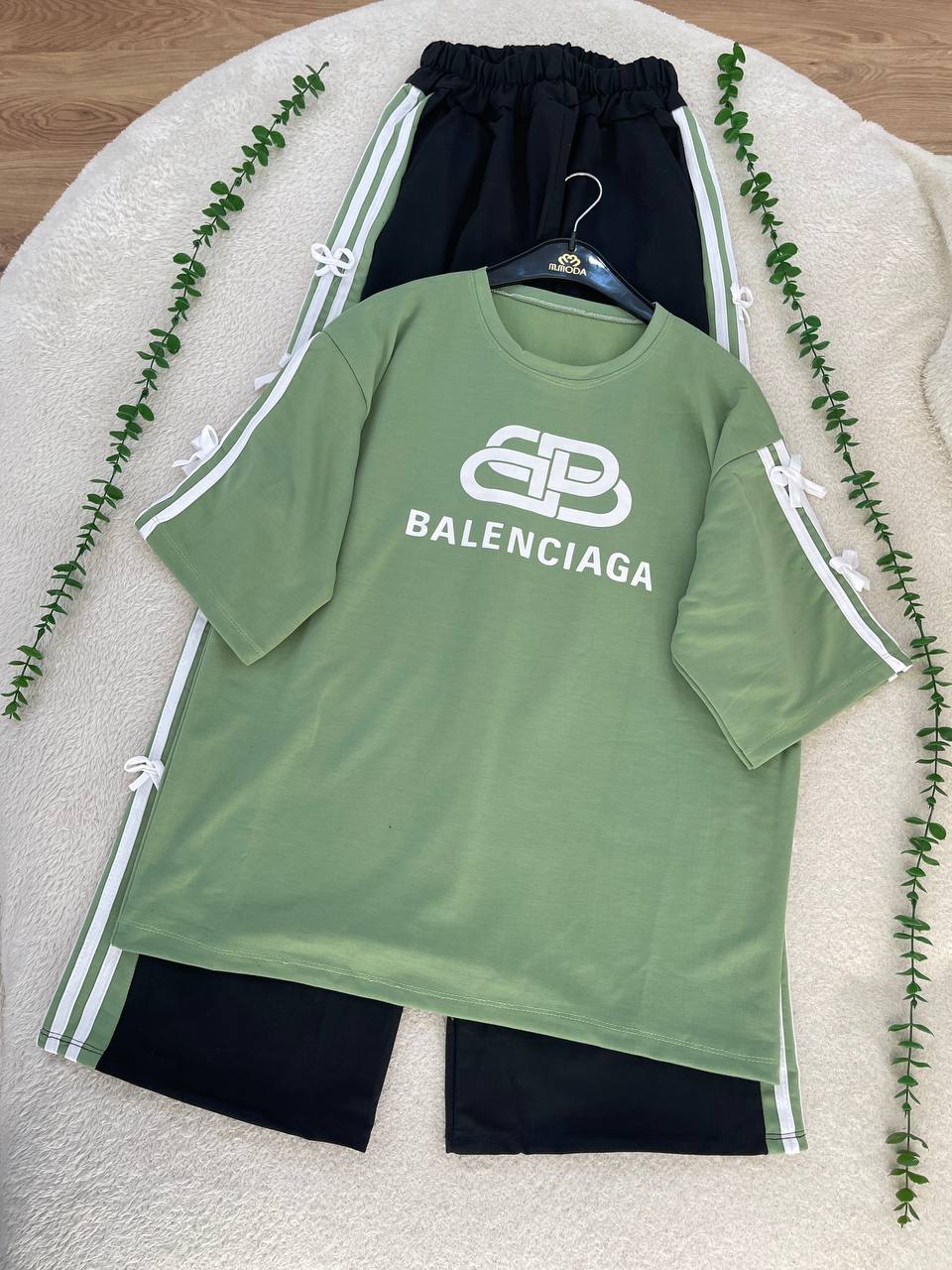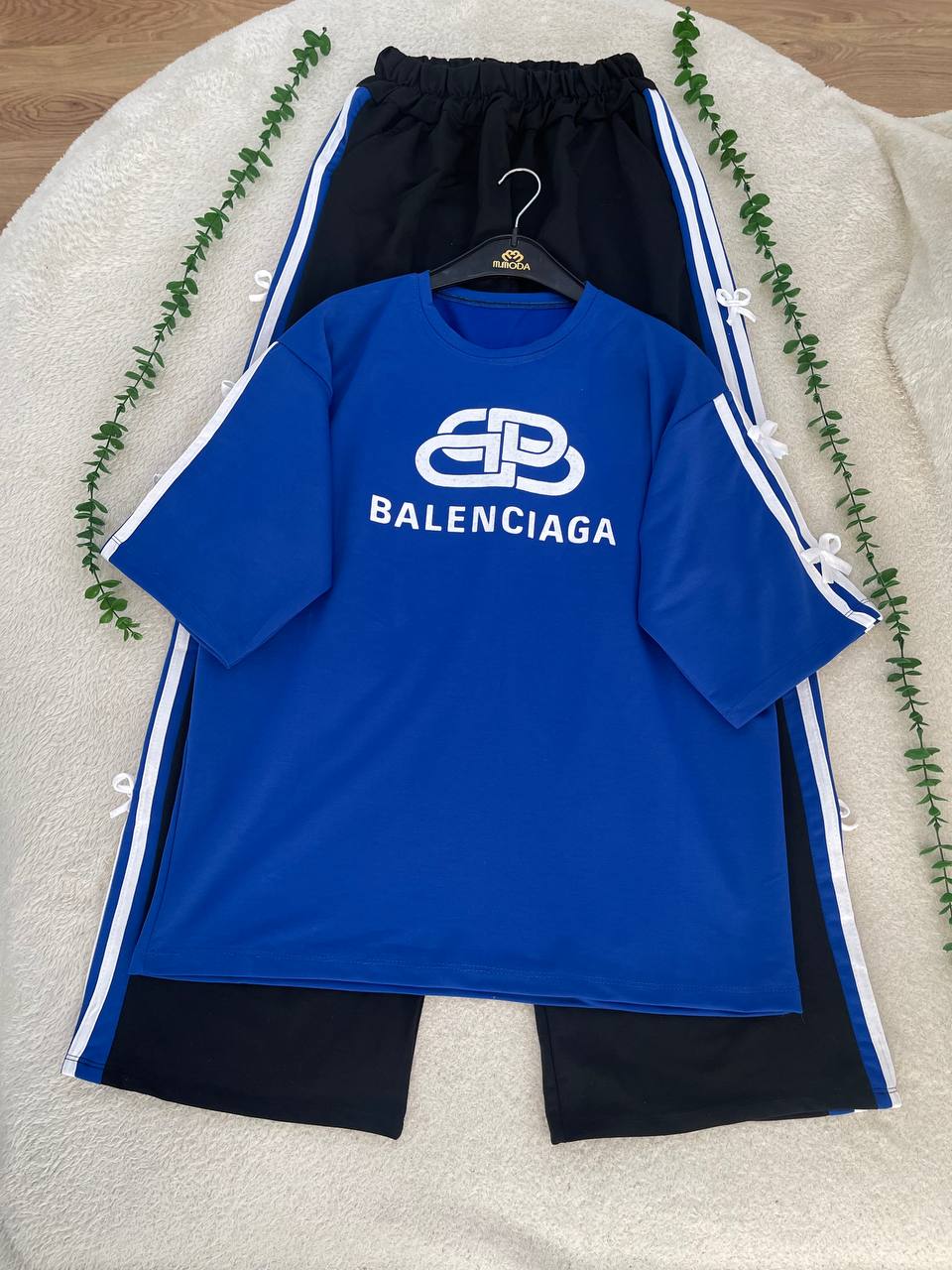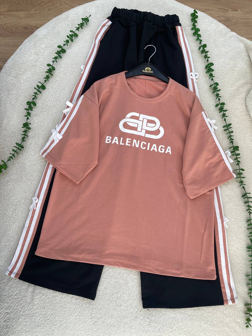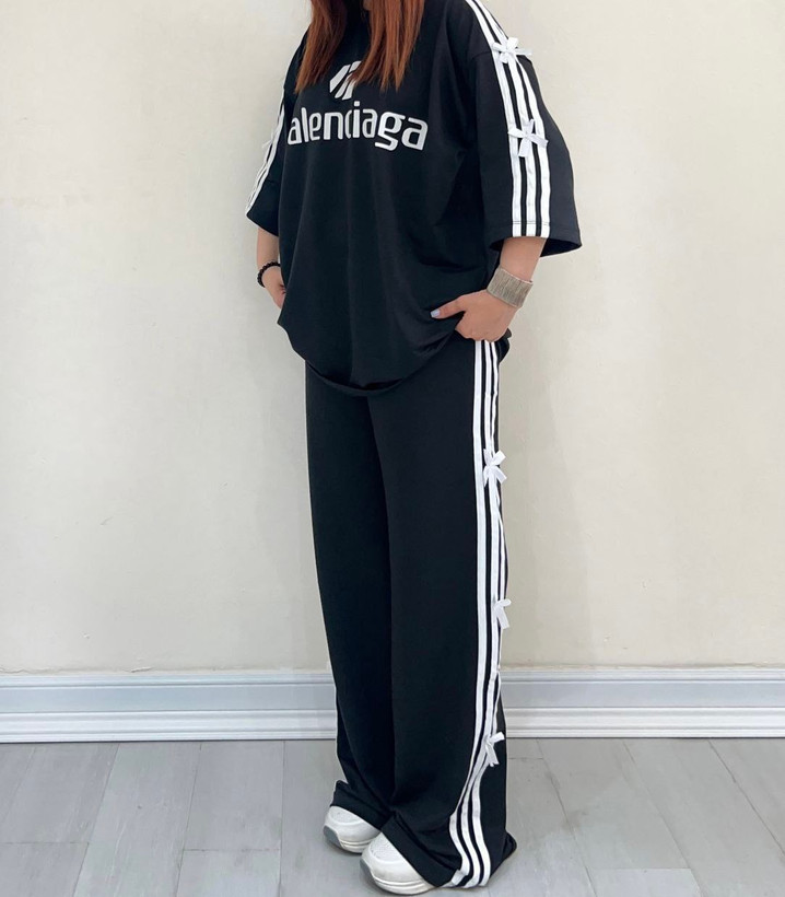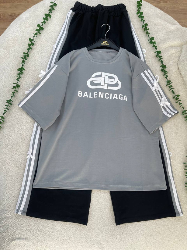 ست تیشرت شلوار بالنسیاگا رنگی جنس دورس گلکسی فری سایز