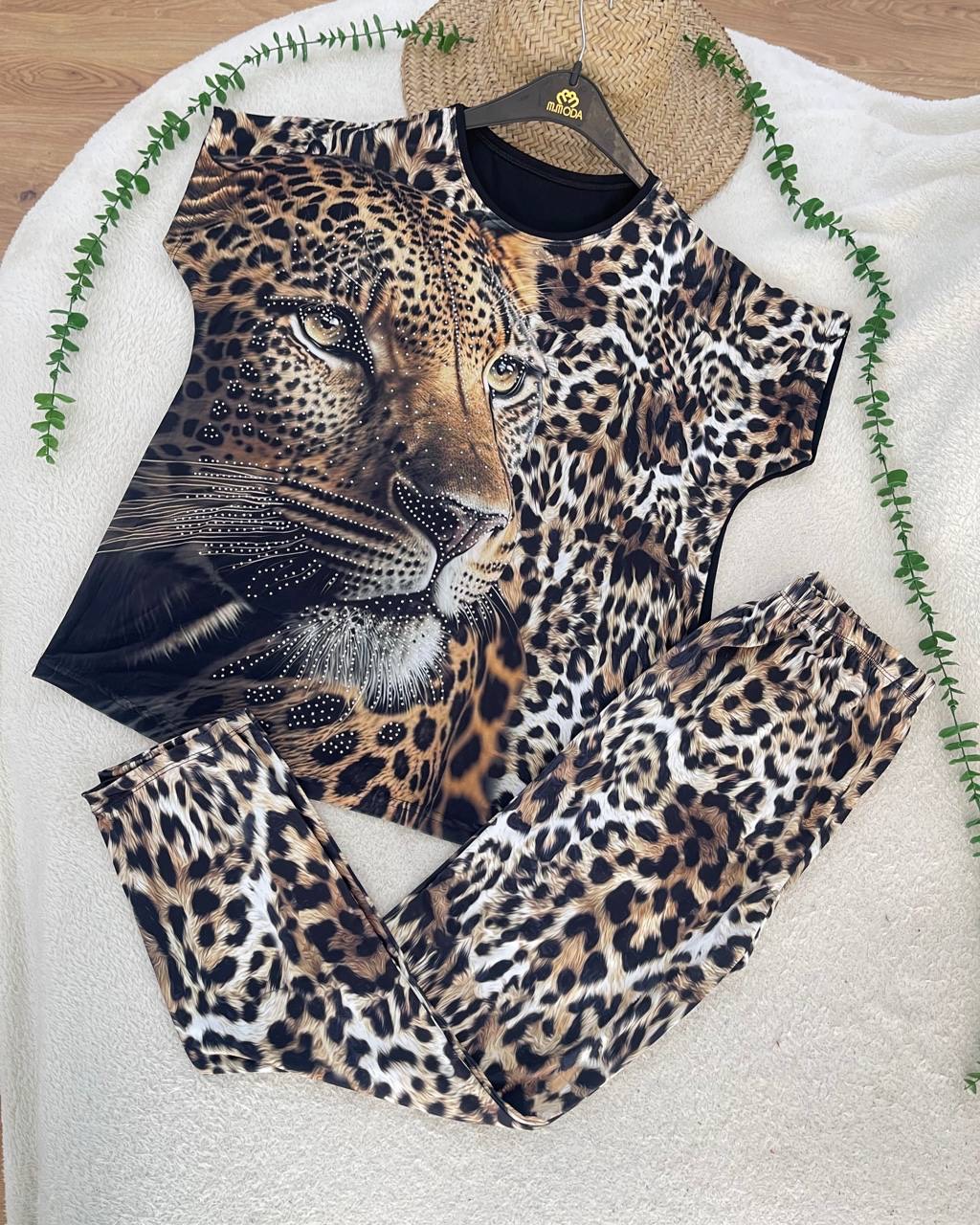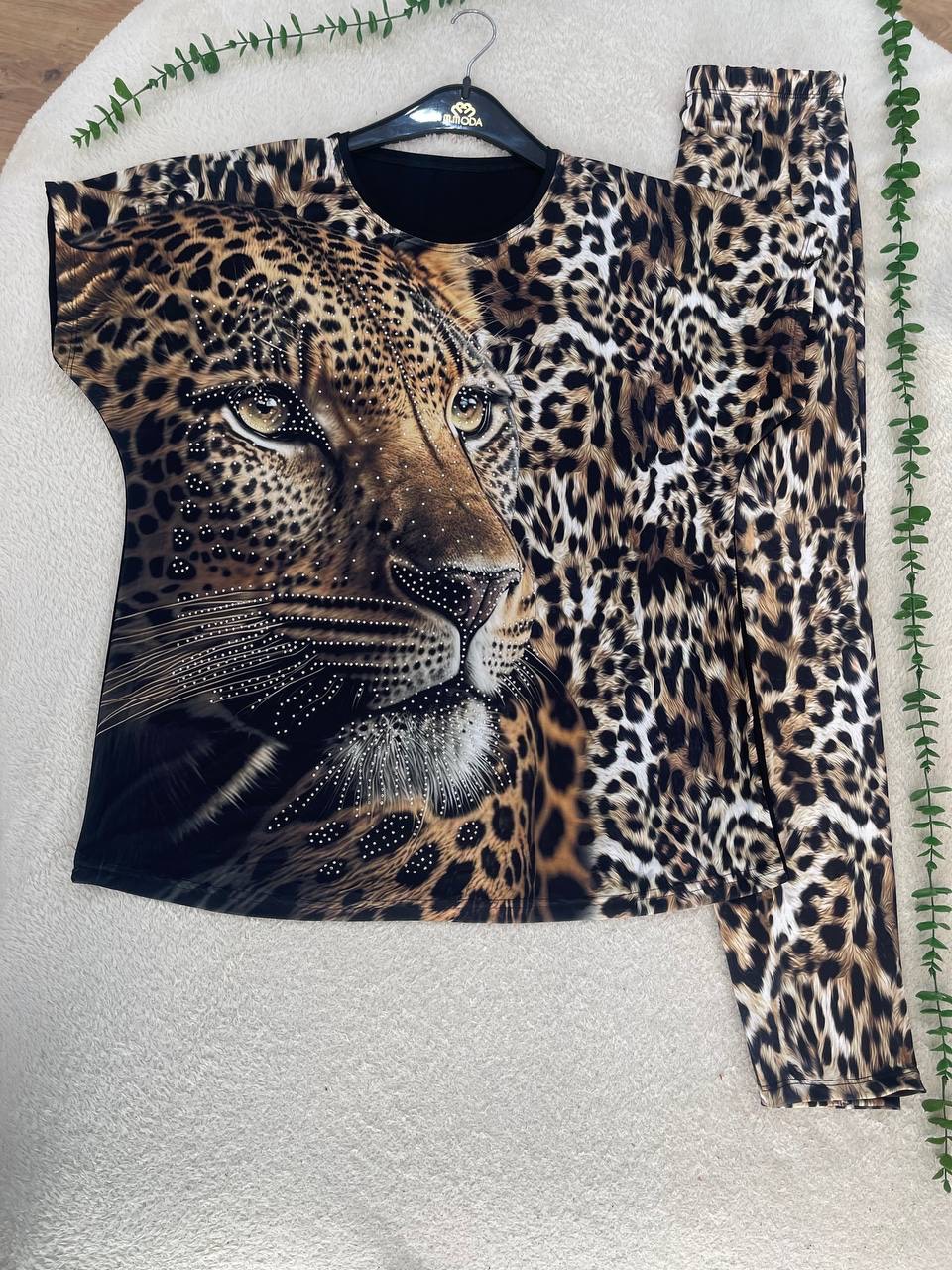ست تیشرت شلوار لیزا جنس فلامنت الیزه فول کش نگین کاری شده فری سایز