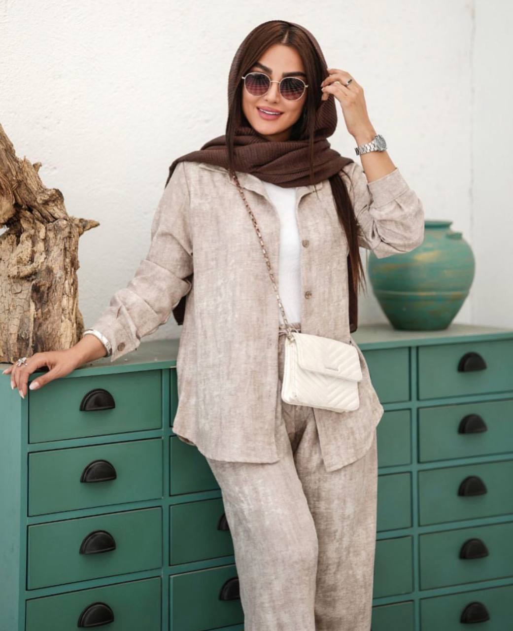جنس: صوفیا گازوییلی رنگ بندی : سورمه ای, سفید, خاکی, نسکافه ای سایز ها : فری از 38 تا 48 قد مانتو حدود 80 - دورسینه حدود 116 - قد استین از یقه حدود 64 - قد شلوار حدود 100 - دمپا شلوار حدود 28