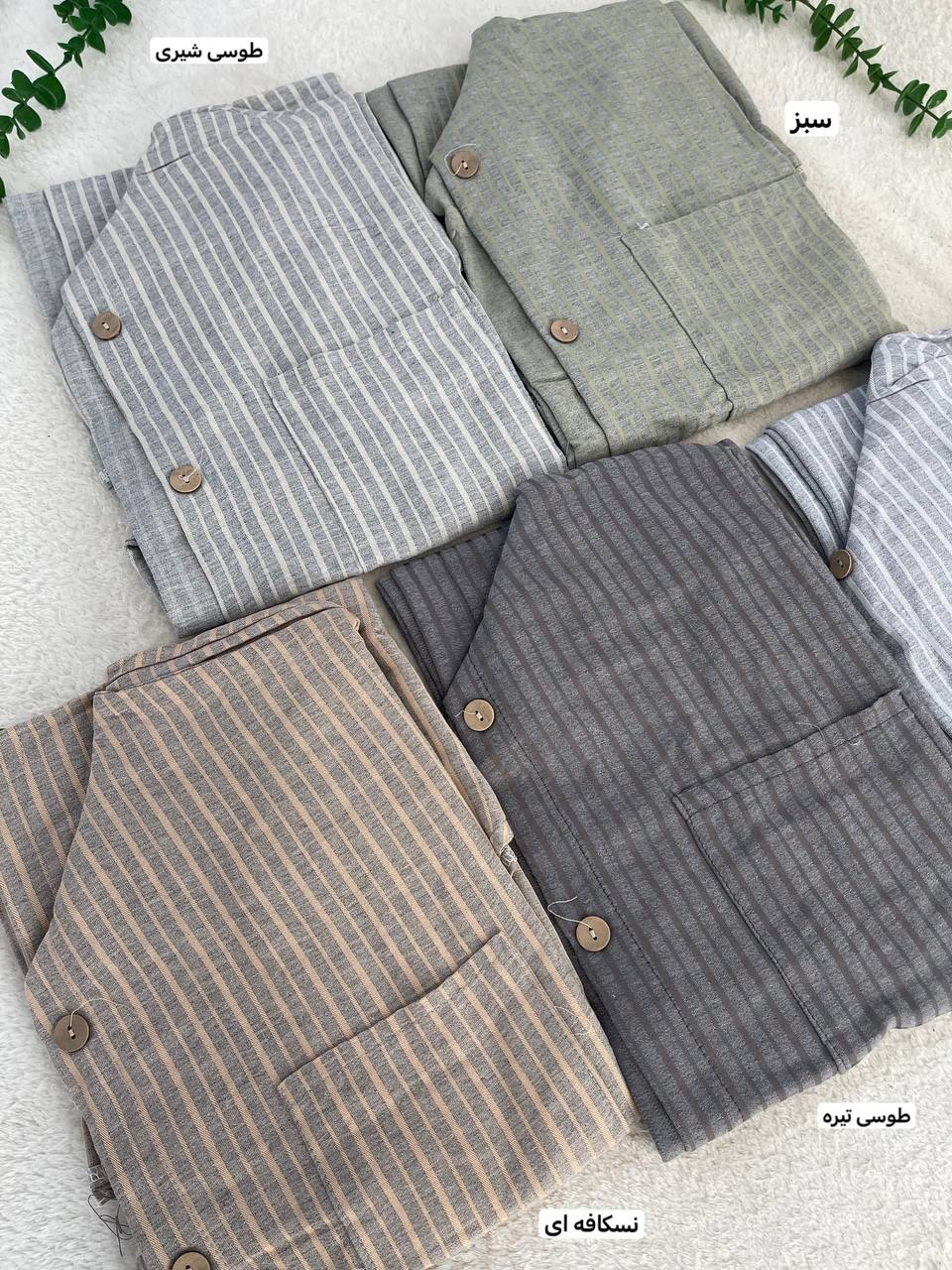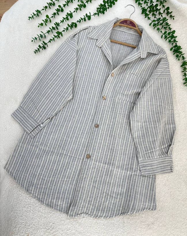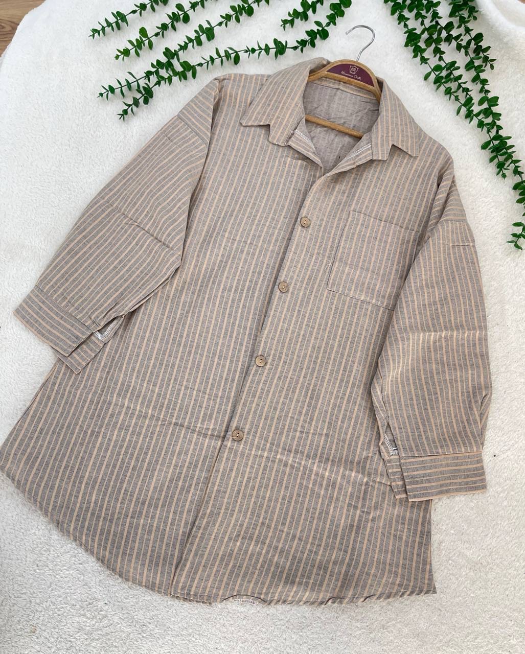 مانتو لینن لیلا جنس لینن راه راه فری سایز