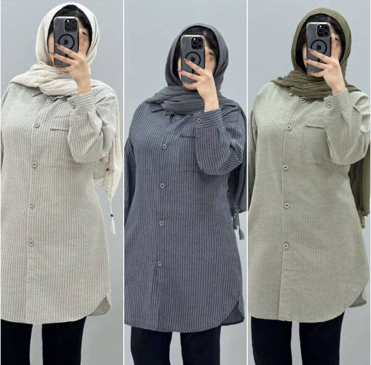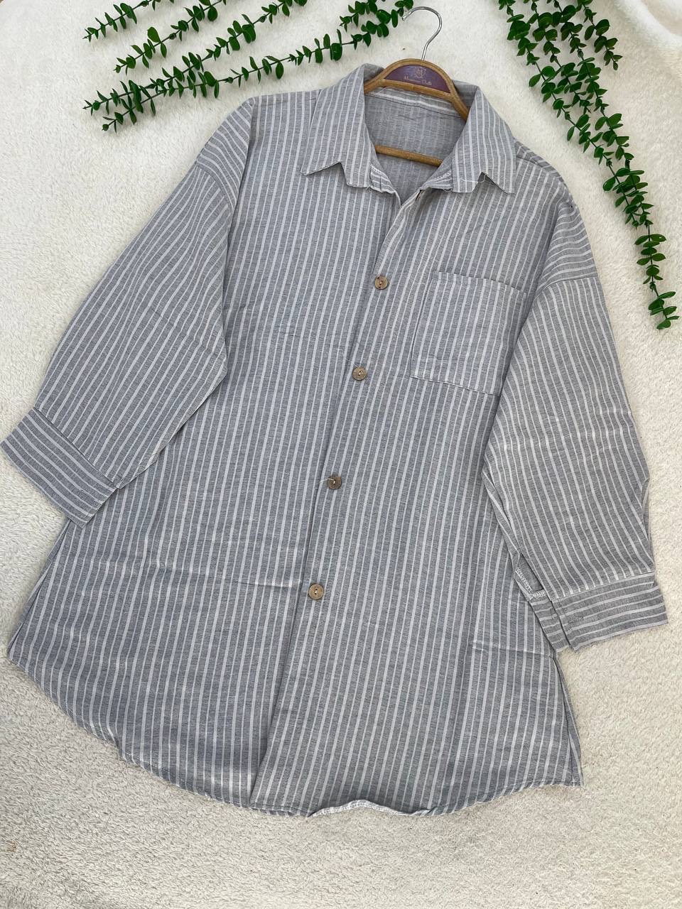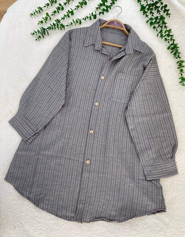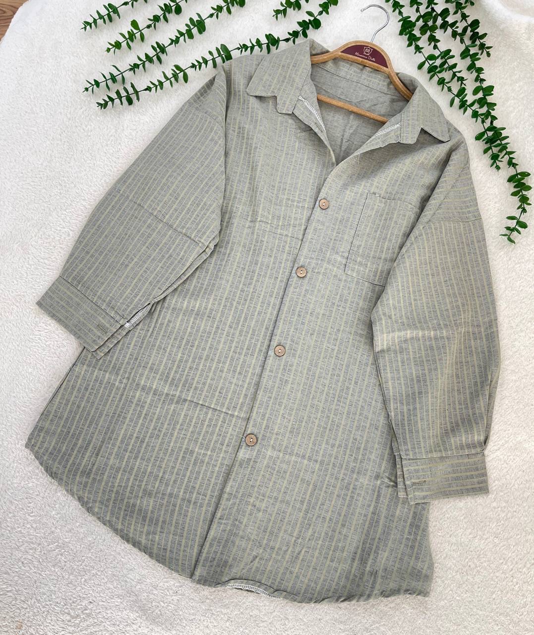 مانتو لینن لیلا جنس لینن راه راه فری سایز