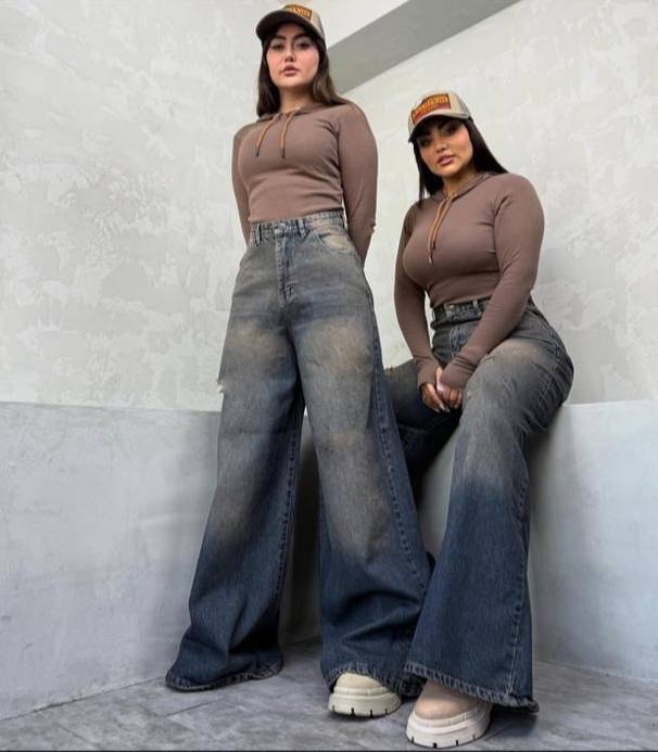 شلوار جین زنانه واید مرسدس جنس جین دارای سایزبندی ارسال رایگان